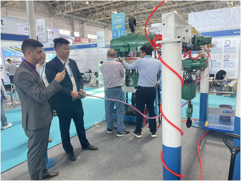 2023年5月31日-6月2日,在北京舉行的中國(guó)國(guó)際石油石化技術(shù)裝備展覽會(huì)(cippe)上,南京今明機(jī)械工程有限公司作為本次展會(huì)的參展商之一,主要展示了氣動(dòng)平衡器和氣動(dòng)葫蘆兩種產(chǎn)品。南京今明機(jī)械工程有限公司展示了最新的50T氣動(dòng)葫蘆產(chǎn)品,成為了展會(huì)的一大亮點(diǎn),產(chǎn)品備受矚目,獲得了廣大中外客商的高度關(guān)注。該產(chǎn)品采用無(wú)油潤(rùn)滑技術(shù),可在潔凈環(huán)境下使用。此外,該產(chǎn)品還具有國(guó)內(nèi)最新技術(shù)無(wú)線遙控功能,可在危險(xiǎn)環(huán)境下遠(yuǎn)距離操作,保證操作者的安全。為石油、化工行業(yè)提高安全作業(yè)提供了可靠的選擇。